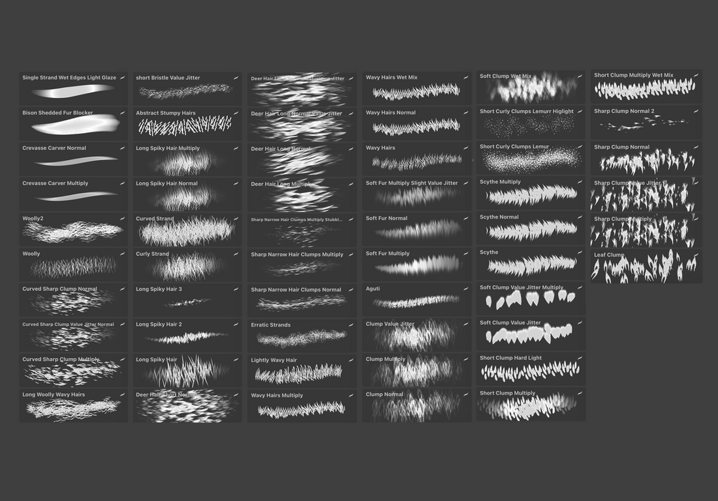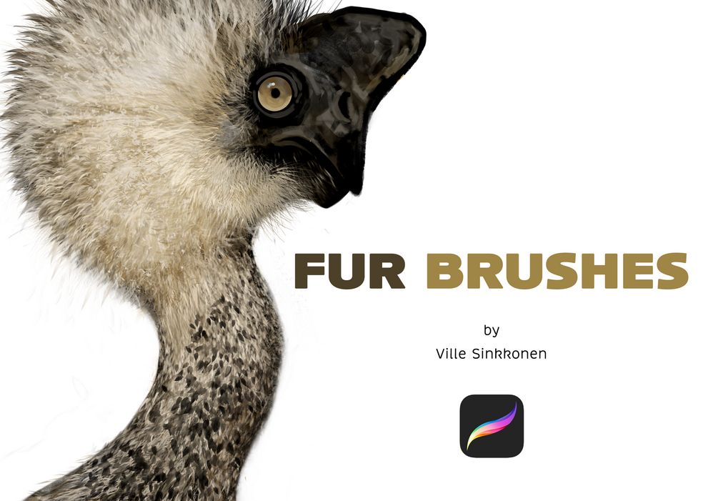 Fur brushes for Procreate specifically designed for creature and animal art needs. includes 56 brushes, intro video and the full procreate timelapse of the Oviraptorid dinosaur painting showing the brushes in action.